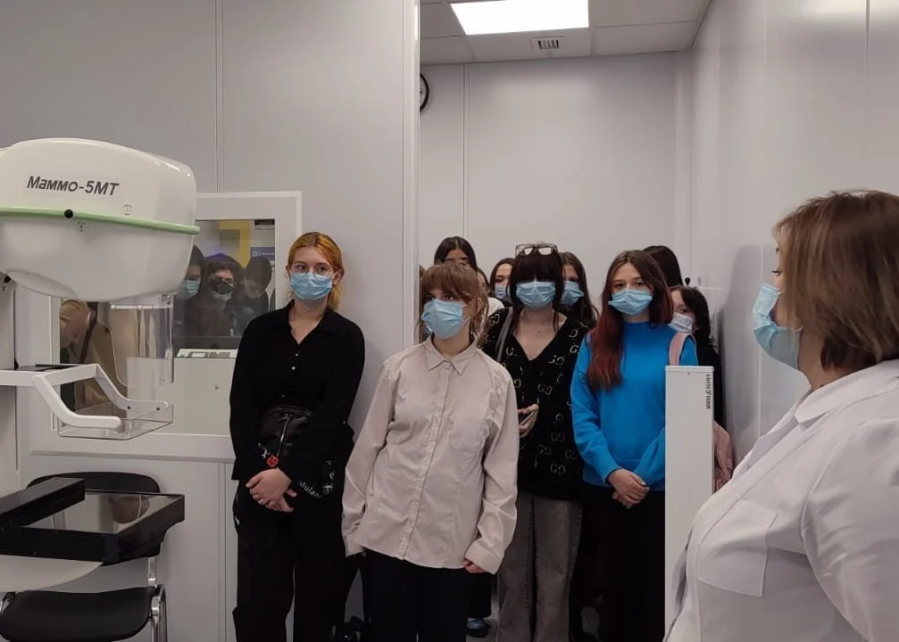 В рамках сотрудничества между медицинскими и общеобразовательными учреждениями региона по профориентации в гости к сотрудникам новой городской поликлиники, открывшейся в прошлом году, пришли ученики 9-11-х классов калининградской школы № 3, которые хотят связать свою жизнь с медициной, всего 17 человек.