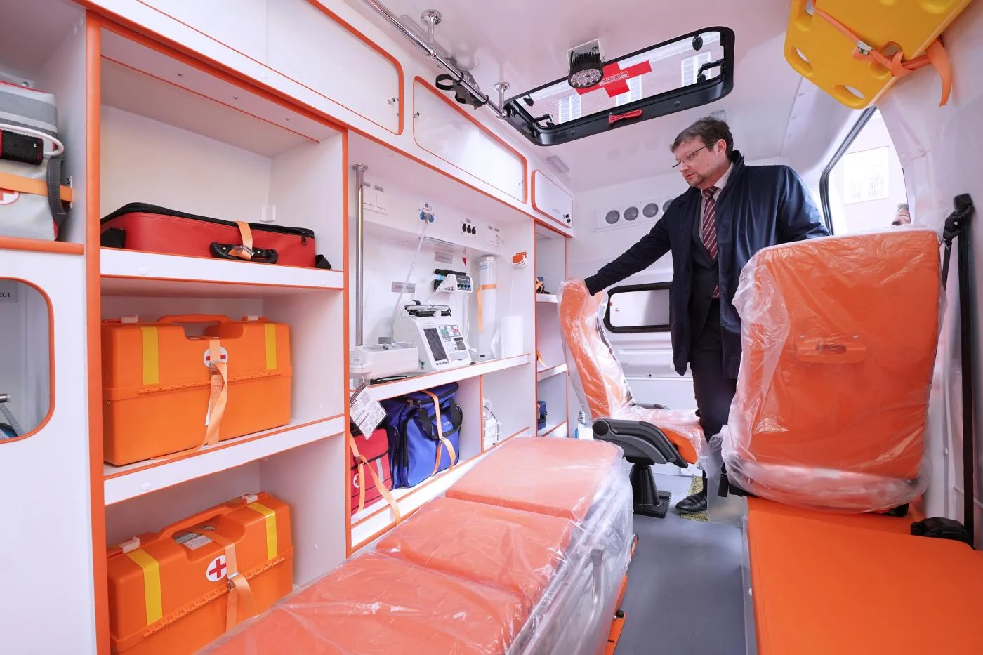 Главный врач станции Игорь Старостин отметил, что все шестнадцать новых автомобилей – класса «В», оснащены в соответствии с принятым порядком. В каждой единице имеется все необходимое оборудование начиная с дефибриллятора и заканчивая электрокардиографом. «Этот отечественный автомобиль очень удобный и для бригады, и для пациента, он специально сделан для оказания полномасштабной скорой медицинской помощи, – поделился впечатлениями от нового автотранспорта Игорь Старостин. – Высоко поднятый потолок позволяет персоналу спокойно стоять в полный рост и работать с пациентом. Также существует горизонтальная система смещения носилок, и есть возможность подойти к больному как с одной, так и с другой стороны».
